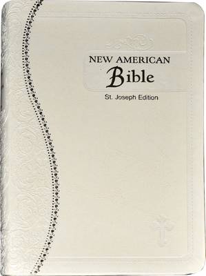 The popular Medium-Size Gift Edition of the St. Joseph New American (Catholic) Bible from Catholic Book Publishing contains the complete Old and New Testaments in easy-to-read type, as well as many helpful aids for easy Bible reading including new maps, full-color illustrations, and Family Record. The beautiful and elegant features of this high-quality, medium-size (5-1 /2\ x 8\) St. Joseph New American Bible include supple material, blind embossing, foil stamping, precise stitching, and decorative gilding to provide an exquisite and unique package for the Word of God. Flexible white imitation leather cover. An unparalleled Catholic Bible gift from Catholic Book Publishing.
