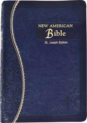 The popular Medium-Size Gift Edition of the St. Joseph New American (Catholic) Bible from Catholic Book Publishing contains the complete Old and New Testaments in easy-to-read type, as well as many helpful aids for easy Bible reading including new maps, full-color illustrations, and Family Record. The beautiful and elegant features of this high-quality, medium-size (5-1/2\ x 8\) St. Joseph New American Bible include supple material, blind embossing, foil stamping, precise stitching, and decorative gilding to provide an exquisite and unique package for the Word of God. Flexible blue imitation leather cover. An unparalleled Catholic Bible gift from Catholic Book Publishing.