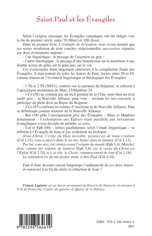 Les Évangiles canoniques ont été rédigés vers la fin du premier siècle, entre 70 (Marc) et 100 (Jean). Dans L'évangile de Jérusalem, l'auteur a montré que ces textes résultaient de trois couches rédactionnelles successives séparées par deux événements majeurs : l'un linguistique (passage de l'araméen au grec), l'autre théologique. Ces événements étant largement antérieurs à la compilation finale des Évangiles, il était tentant de relire les lettres de Paul, comme témoin de l'évolution linguistique et théologique des Évangiles.