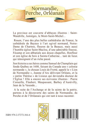 La province est couverte d'abbayes illustres : Saint-Wandrille, Jumièges, le Mont-Saint-Michel... Rouen, l'une des plus belles cathédrales de France, la cathédrale de Bayeux à l'art ogival normand, Notre-Dame de Chartres, fleuron de la Beauce, mais aussi l'humble église Saint- Maclou, d'une admirable finesse, Fécamp et son abbatiale aux douze chapelles, Honfleur et son église de bois à Sainte-Catherine... tant de lieux témoignent d'un riche passé. Son histoire a ses héros comme Samuel de Champlain qui fonde Québec en 1608, faisant du Canada une « colonie normande », le chouan Louis de Frotté, appelé le « Lion de Normandie », Jeanne d'Arc délivrant Orléans, et la « petite Thérèse » de Lisieux qui deviendra docteur de l'Eglise ! Elle a encore ses écrivains illustres : Pierre Corneille, Flaubert, Maupassant, Barbey d'Aurévilly, Jean de la Varende...