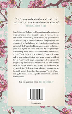 Toen botanicus Collingwood Ingram in 1902 Japan bezocht werd hij verliefd op de kersenbloesem, de sakura. Tijdens een bezoek ruim twintig jaar later was hij geschokt door de achteruitgang in soortendiversiteit. Een gekloonde kers domineerde het landschap en was symbool van de expansiedrift van het land. Duizenden kilometers verderop, op het landgoed van Ingram in Kent, floreerde de oorspronkelijke bloesem nog steeds. De botanicus besloot de soort te repatriëren. Met de Transsiberië Express vervoerde hij een stek in een aardappel naar Japan. Ingram groeide uit tot een van ’s werelds meest toonaangevende kersenexperts. Dit prachtige boek vertelt het verhaal van een opmerkelijke man, die getuige was van een beladen eeuw vol conflicten en verandering. De lezer volgt de sakura als symbool aan het keizerlijk hof, via de donkere dagen van de Tweede Wereldoorlog, tot aan de hedendaagse fascinatie voor deze iconische bloesem.