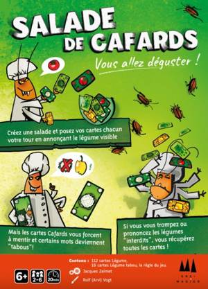 Légumes à volonté ! Pour préparer une curieuse salade, les joueurs posent leurs cartes Légumes à tour de rôle. Sitôt la carte posée, le joueur doit vite annoncer le nom du Légume. Le problème, c'est qu'il ne faut jamais répéter le même nom que le joueur précédent, quitte à mentir ! Entre vérité et mensonge forcé, évitez de cafouiller!
