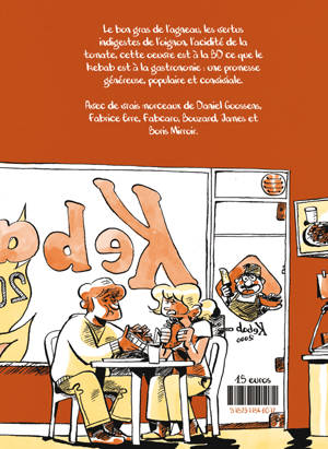 L'humour gras comme la viande, un gout qui reste en bouche comme l'oignon et l'acidité de la tomate : voilà le savoureux mélange de cet album populaire comme le kebab. Un brun irrévérencieux et provocateurs, Joseph et Clément racontent avec une belle dose d'absurdité et d'exagération des scènes du quotidien. Un anniversaire, une conversation sur un banc, un jeune homme épris d'une demoiselle... : des moments banals avant que tout dérape jusqu'à l'apogée de la bêtise des personnages !