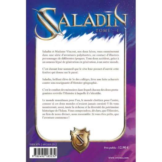 Saladin et Madame Vincent, nos deux héros, vous emmèneront, dans une série d’aventures palpitantes, au contact d’illustres personnages de différentes époques. Tous deux accèdent, grâce à un anneau magique légué de génération en génération, à un autre monde. C’est durant leur sommeil que le rêve leur permet d’ouvrir cette fenêtre qui donne sur le passé. Saladin, brillant élève de 5e des collèges, livre une lutte acharnée contre son enseignante d’Histoire-géographie. C’est le combat des mémoires dans lequel chacun des deux protagonistes revivifie l’Histoire à laquelle il s’identifie. Le monde musulman pour l’un, le monde chrétien pour l’autre, comme si ces deux mondes n’avaient jamais coexisté !! Ils vous montreront, aussi, toute la richesse et la diversité du patrimoine historique de l’Islam. Vous comprendrez, dès lors, que l’Histoire, au lieu de nous diviser, nous rassemble. Si vous êtes prêts, que l’aventure commence !