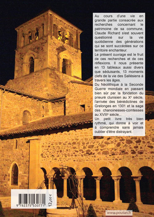 Au cours d'une vie en grande partie consacrée aux recherches concernant le patrimoine de sa commune, Claude Richard s'est souvent questionné sur la vie quotidienne des générations qui se sont succédées sur ce patrimoine enchanteur. Le présent ouvrage est le fruit de ses recherches et de ces réflexions. Il nous présente en 13 tableaux aussi divers que séduisant, 13 moments clefs de la vie des Sallésiens à travers les âges. Du Néolithique à la Seconde Guerre mondiale en passant bien-sûr par la prieuré clunisien au Xème siècle, l'arrivée des bénédictions Grelonges en 1301 et la saga des chanoinesses-comtesses au XVIIIème siècle... Un petit livre très bien rythmé, qui donne à voir et à comprendre sans jamais oublier d'être distrayant.