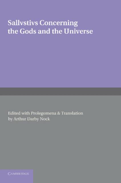 Originally published in 1926, this book contains the ancient Greek text of the fourth-century treatise Concerning the Gods and the Universe by Sallustius. Nock provides an English translation on each facing page, as well as a critical apparatus and a detailed set of prolegomena on the historical background, sources, style and transmission of the philosophical essay.
