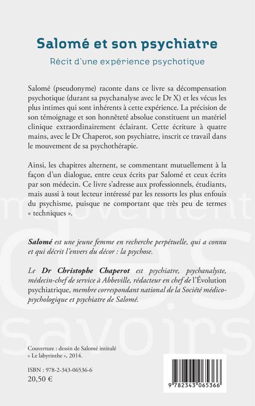 Salomé (pseudonyme) raconte dans ce livre sa décompensation psychotique (durant sa psychanalyse avec le Dr X) et les vécus les plus intimes qui sont inhérents à cette expérience. La précision de son témoignage et son honnêteté absolue constituent un matériel clinique extraordinairement éclairant. Cette écriture à quatre mains, avec le Dr Chaperot, son psychiatre, inscrit ce travail dans le mouvement de sa psychothérapie.