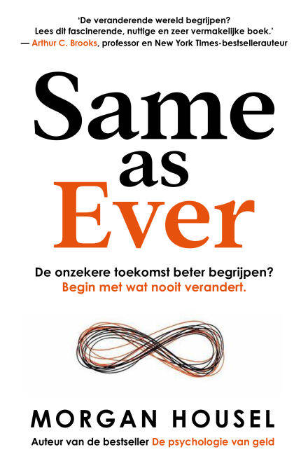 Maar de belangrijke gebeurtenissen die de toekomst bepalen, zijn inherent onvoorspelbaar. In plaats daarvan zouden we een andere vraag moeten stellen: wat zal over twee jaar hetzelfde zijn? Kennis van dingen die nooit veranderen is nuttiger dan een voorspelling van een onkenbare toekomst. In 'Same as ever' deelt Morgan Housel, auteur van de bestseller 'De psychologie van geld', verschillende korte verhalen over de manieren waarop het leven, menselijk gedrag en zakendoen altijd hetzelfde zullen blijven. Gewapend met deze kennis kun je beter nadenken over risico's, kansen en hoe met een onzekere toekomst om te gaan.