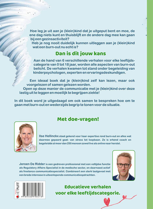 Aan de hand van 6 verschillende verhalen voor elke leeftijds-categorie van 0 tot 18 jaar, worden alle aspecten van burn-out belicht. De verhalen kwamen tot stand onder begeleiding van kinderpsychologen, experten en ervaringsdeskundigen.