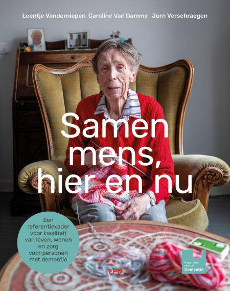 In 2018 verscheen 'Ik, jij, samen mens', een inspiratiewerk voor alle zorgvoorzieningen die met mensen met dementie en hun mantelzorgers in contact komen, over alle zorgsectoren heen. 'De Vlaamse dementiezorg krijgt een nieuwe bijbel', kopte Knack. Met 'Samen mens, hier en nu' is er een opvolger. Het boek reikt een kader aan voor professionele zorgmedewerkers. Het gaat nog sterker in op de triadische zorgrelatie. Persoonsgericht zorg ontstaat in de relatie tussen de persoon met dementie, de mantelzorgers en professionele zorgmedewerker. In een professionele context is kwaliteitsvol leven, wonen en zorgen ook een team- en organisatieopdracht en bij uitbreiding een maatschappelijke opdracht. Collega's, leidinggevenden en beleid moeten een zorgmedewerker optimaal steunen. Net daarom doet het Referentiekader Dementie een appèl op zorgorganisaties: zij scheppen de context waarin een zorgrelatie tot zijn recht kan komen. 'Samen mens, hier en nu' nodigt de lezer uit om opnieuw aandacht te hebben voor de basis van waar leven, wonen en zorg voor de persoon met dementie om draait: relatie en verbondenheid op het ritme van de persoon met dementie.