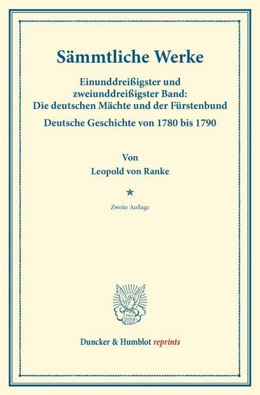 Einunddreissigster Und Zweiunddreissigster Band: Die Deutschen Machte Und Der Furstenbund. Deutsche Geschichte Von 178 Bis 179