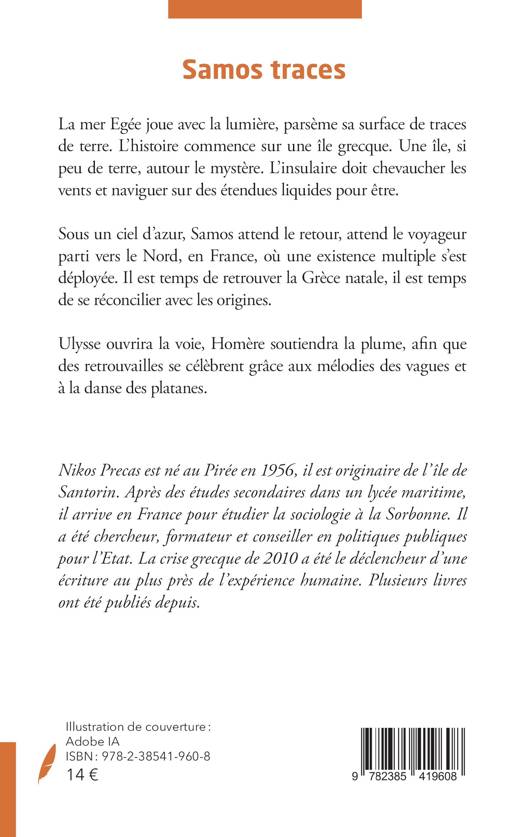 La mer Egée joue avec la lumière, parsème sa surface de traces de terre. L'histoire commence sur une île grecque. Une île, si peu de terre, autour le mystère. L'insulaire doit chevaucher les vents et naviguer sur des étendues liquides pour être. Sous un ciel d'azur, Samos attend le retour, attend le voyageur parti vers le Nord, en France, où une existence multiple s'est déployée. Il est temps de retrouver la Grèce natale, il est temps de se réconcilier avec les origines. Ulysse ouvrira la voie, Homère soutiendra la plume, afin que des retrouvailles se célèbrent grâce aux mélodies des vagues et à la danse des platanes.