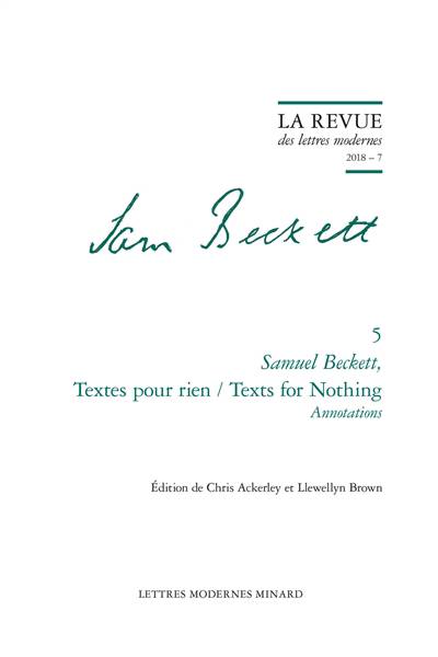 Textes pour rien / Texts for Nothing de Samuel Beckett, a été relativement négligé par la critique, qui tend à le réduire à l'expression d'une impasse créative. Ce livre - comme les études dans le volume suivant de notre série - vise à le révéler comme une réussite esthétique. Ces annotations éclairent la structure de l'oeuvre, la richesse des allusions intertextuelles ou biographiques, et des échos aux autres oeuvres de Beckett. Elles commentent les nuances de ton et des effets de style. S'adressant à un lectorat bilingue, cet ouvrage souligne les divergences entre les deux « versions », et qui sont révélatrices de certains choix esthétiques de l'auteur. Cette étude est complétée par une bibliographie de la critique en français et en anglais.