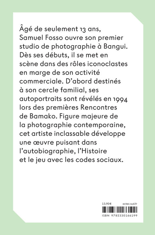 Âgé de seulement treize ans, Samuel Fosso ouvre son premier studio de photographie à Bangui. Dès ses débuts, il se met en scène dans des rôles iconoclastes en marge de son activité commerciale. D'abord destinés à son cercle familial, ses autoportraits sont révélés en 1994 lors des premières Rencontres de Bamako. Figure majeure de la photographie contemporaine, cet artiste inclassable développe une oeuvre puisant dans l'autobiographie, l'Histoire et le jeu avec les codes sociaux.