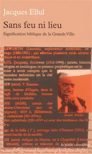 "La Ville est par excellence le monde de l'homme, créée par lui pour lui, mesure de sa grandeur, expression de toute civilisation, mais en même temps elle est le témoin de la démesure humaine, oeuvre de l'avidité d'argent et d'ambition, dont les hommes deviennent esclaves." Ainsi s'exprime Jacques Ellul dans cet ouvrage qui a connu un succès considérable aux États-Unis. À travers la Bible, l'auteur découvre une surréalité de la ville. À l'origine, elle est dressée contre Dieu. Caïn, condamné à l'errance éternelle, se fait bâtisseur avec toute sa postérité : il s'agit de créer le nouveau Paradis de l'absence de Dieu. C'est pourquoi toutes les villes sont maudites : Babel, Babylone, Ninive... La cité qui était recherche de l'unité perdue, liée à la puissance et à la guerre, devient le lieu de la non-communication et cause sa propre perte... Mais au cours de l'histoire biblique, en Jérusalem, Dieu ratifie le projet humain de la ville. Jérusalem, sans cesse détruite et rebâtie, devient signe et prophétie de la Cité sainte. La dialectique de l'auteur culmine dans son interprétation à travers la destruction et l'anéantissement, du jardin à la ville...