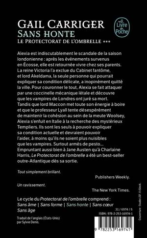 Après les événements survenus en Écosse, Alexia est retournée vivre chez ses parents. La reine Victoria l’a exclue du Cabinet fantôme, et Lord Akeldama, la seule personne qui pourrait expliquer sa condition délicate, a inopinément quitté la ville. Pour couronner le tout, Alexia découvre que les vampires de Londres ont juré sa mort. Tandis que Lord Maccon met toute son énergie à boire et que le Professeur Lyall tente désespérément de maintenir la cohésion au sein de la meute Woolsey, Alexia s’enfuit en Italie à la recherche des mystérieux Templiers. Ils devraient pouvoir l’aider, à moins qu’ils ne soient plus nuisibles que les vampires. Surtout armés de pesto… Un troisième tome rythmé et fort en révélations !