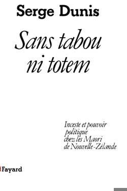 L'inceste unique des origines permet à Tane, ancêtre des chefs héréditaires, de s'emparer du feu sexuel des parents primordiaux, le ciel-père Rangi et la terre-mère Papa. Cet acte fondateur du pouvoir religieux et politique de reproduction du monde, interdit à tous les autres, est la clef de voûte des structures Maori. En mettant au jour la nature oedipienne du pouvoir, Serge Dunis établit la généalogie de la création fantasmatique niant la créativité féminine pour promouvoir l'ordre des hommes.