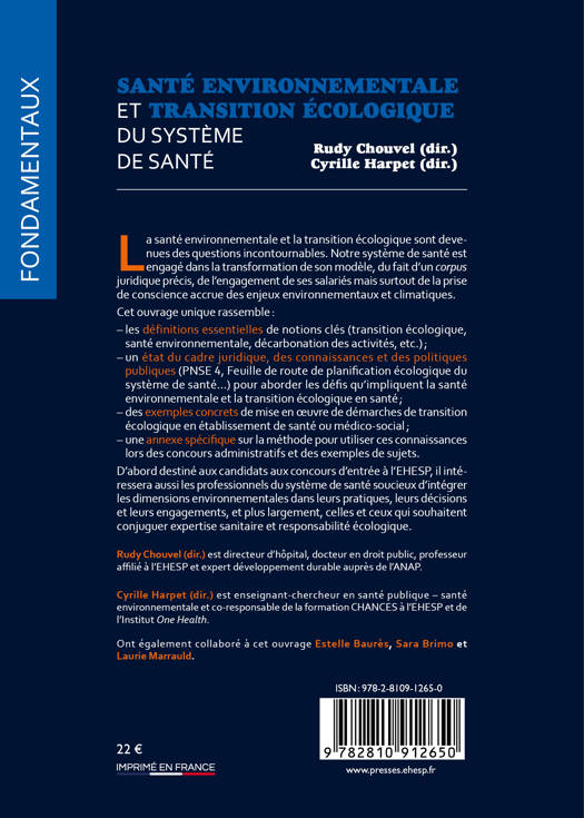 D’abord destiné aux candidats aux concours d’entrée à l’EHESP, il intéressera aussi les professionnels du système de santé soucieux d’intégrer les dimensions environnementales dans leurs pratiques, leurs décisions et leurs engagements, et plus largement, celles et ceux qui souhaitent conjuguer expertise sanitaire et responsabilité écologique.