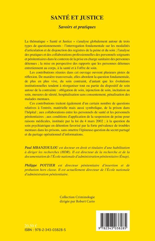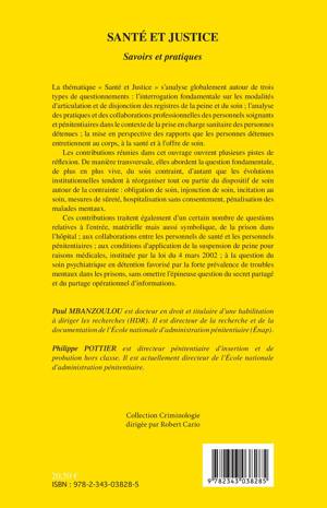 Ces contributions abordent la question, de plus en plus vive, du soin contraint. Elles traitent aussi des questions relatives à l'entrée, matérielle et symbolique, de la prison dans l'hôpital ; à la collaboration entre les personnels de santé et les personnels pénitentiaires ; aux conditions d'application de la suspension de peine pour raisons médicales ; au soin psychiatrique en détention ; au secret partagé et au partage opérationnel d'informations.