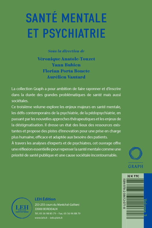 Ce troisième volume explore les enjeux majeurs en santé mentale, les dé s contemporains de la psychiatrie, de la pédopsychiatrie, en passant par les nouvelles approches thérapeutiques et les enjeux de la déstigmatisation. Il dresse un état des lieux des ressources existantes et propose des pistes d’innovation pour une prise en charge plus humaine, efficace et adaptée aux besoins des patients. À travers les analyses d’experts et de psychiatres, cet ouvrage ouvre une réflexion essentielle pour repenser la santé mentale comme une priorité de santé publique et une cause sociétale incontournable.