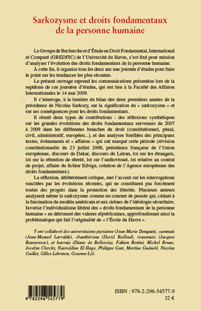 Cet ouvrage s'interroge, à la lumière du bilan des deux premières années de la présidence de Nicolas Sarkozy, sur la signification du "sarkozysme" et sur ses conséquences pour les droits fondamentaux. Sont réunies des réflexions synthétiques sur les grandes évolutions des droits fondamentaux survenues de 2007 à 2009 dans les différentes branches du droit (constitutionnel, pénal, civil, administratif, européen) et des analyses fouillées des principaux textes, événements et "affaires" qui ont marqué cette période.