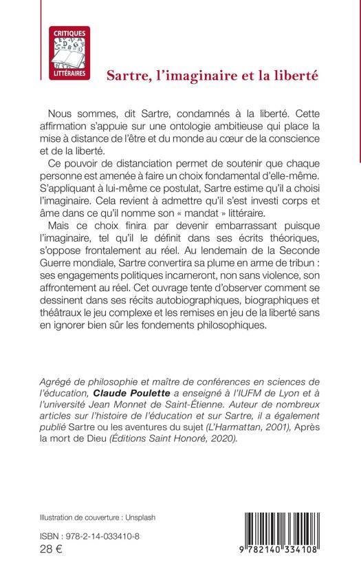 Nous sommes, dit Sartre, condamnés à la liberté. Cette affirmation s'appuie sur une ontologie ambitieuse qui place la mise à distance de l'être et du monde au cur de la conscience et de la liberté. Ce pouvoir de distanciation permet de soutenir que chaque personne est amenée à faire un choix fondamental d'elle-même. S'appliquant à lui-même ce postulat, Sartre estime qu'il a choisi l'imaginaire. Cela revient à admettre qu'il s'est investi corps et âme dans ce qu'il nomme son « mandat » littéraire. Mais ce choix finira par devenir embarrassant puisque l'imaginaire, tel qu'il le définit dans ses écrits théoriques, s'oppose frontalement au réel. Au lendemain de la Seconde Guerre mondiale, Sartre convertira sa plume en arme de tribun : ses engagements politiques incarneront, non sans violence, son affrontement au réel. Cet ouvrage tente d'observer comment se dessinent dans ses récits autobiographiques, biographiques et théâtraux le jeu complexe et les remises en jeu de la liberté sans en ignorer bien sûr les fondements philosophiques.