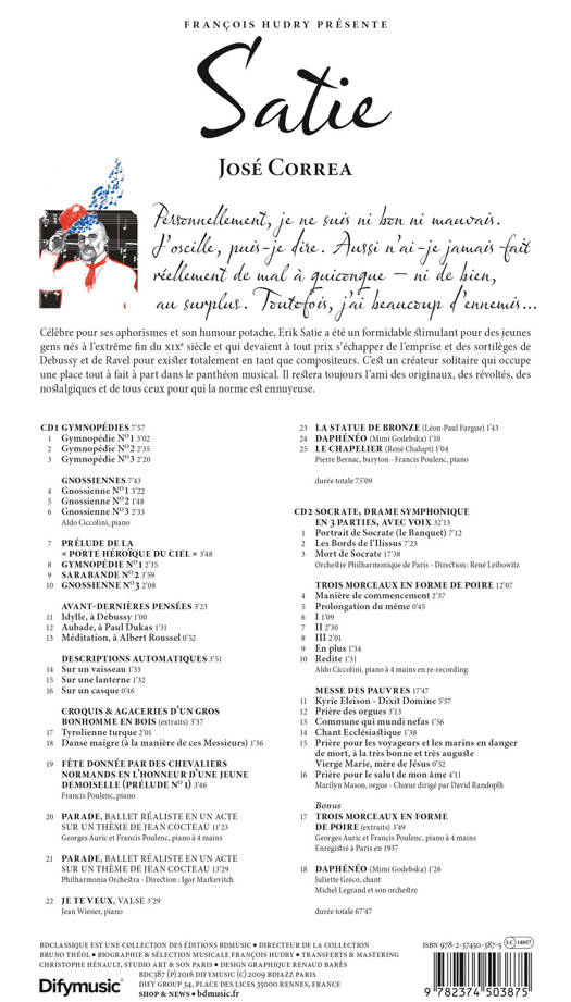 La biographie de Erik Satie par François Hudry, illustrée par José Correa et accompagnée de 2 compacts discs