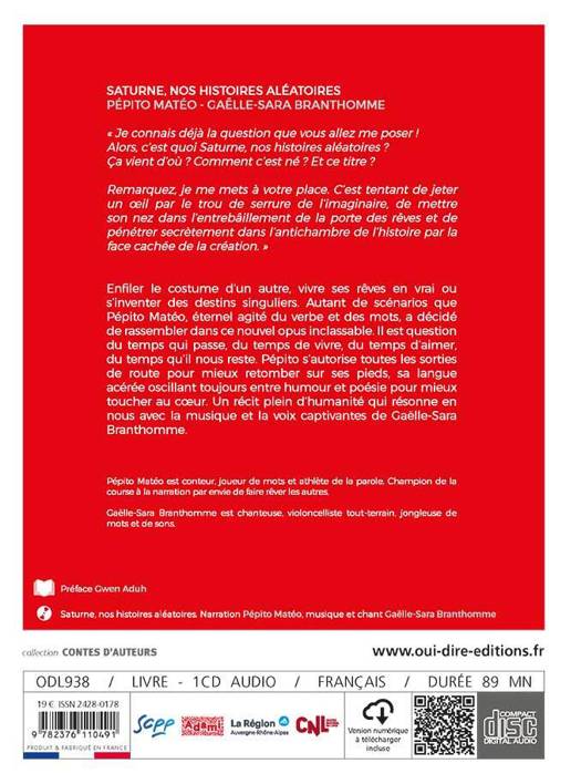 Des histoires urbaines, des histoires de hasard qui s'inventent leurs propres trajectoires au gré des rencontres fortuites, d'étranges coïncidences et de rendez-vous manqués. Il est question du temps qui passe, du temps de vivre, du temps d'aimer, du temps qu'il nous reste. Pépito Matéo s'autorise toutes les sorties de route pour mieux retomber sur ses pieds, sa langue acérée oscillant toujours entre humour et poésie pour mieux toucher au coeur. C'est un récit plein d'humanité qui résonne en nous avec la musique et la voix captivantes de Gaëlle-Sara Branthomme... Des histoires gigognes dont on se délecte avec gourmandise jusqu'à la révélation finale !