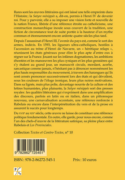 lettres humanistes, plus plaisante, la Satyre ménippée sort des presses