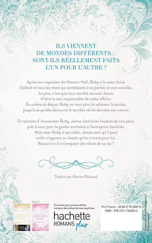 Le dernier tome de la série phénomène de romance allemande, à l'origine de l'adaptation audiovisuelle sur Prime Video. Ils viennent de mondes différents... Sont-ils réellement faits l'un pour l'autre ? Après son expulsion de Maxton Hall, Ruby a le coeur brisé. Oxford et tous les rêves qui semblaient à sa portée se sont envolés. Le pire, c'est que tout semble accuser James d'être le seul responsable de cette affaire. En colère et déçue, Ruby ne veut plus lui adresser la parole, jusqu'à ce qu'elle découvre la terrible vérité derrière son renvoi. En tentant d'innocenter Ruby, James s'attire les foudres de son père, prêt à tout pour le garder enchaîné à l'entreprise familiale. Mais avec Rubyà ses côtés, James sent qu'il peut enfin s'opposer au destin qu'on a tracé pour lui. Réussira-t-il à s'emparer des rênes de sa vie ?