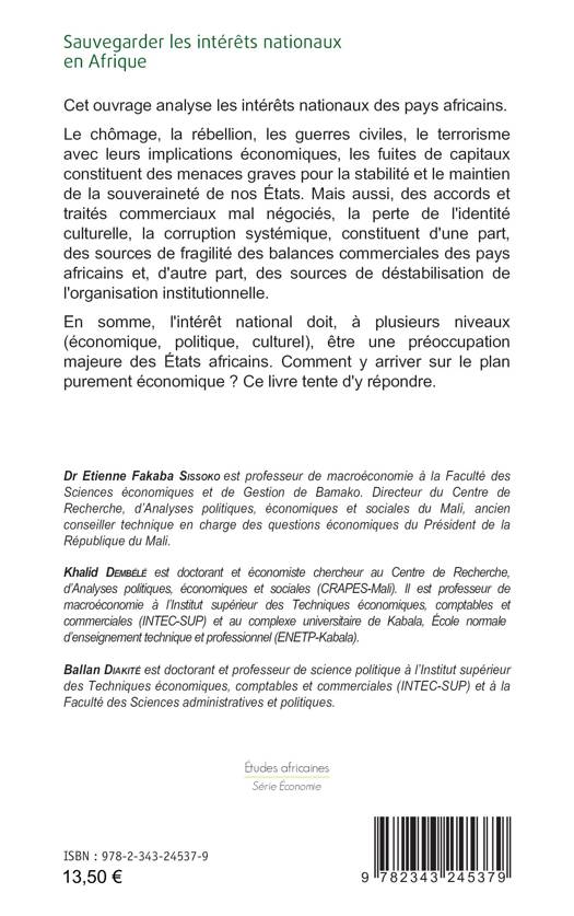 Cet ouvrage analyse les intérêts nationaux des pays africains. Le chômage, la rébellion, les guerres civiles, le terrorisme avec leurs implications économiques, les fuites de capitaux constituent des menaces graves pour la stabilité et le maintien de la souveraineté de nos États. Mais aussi, des accords et traités commerciaux mal négociés, la perte de l'identité culturelle, la corruption systémique constituent, d'une part, des sources de fragilité des balances commerciales des pays africains et, d'autre part, des sources de déstabilisation de l'organisation institutionnelle. En somme, l'intérêt national doit, à plusieurs niveaux (économique, politique, culturel), être une préoccupation majeure des États africains. Comment y arriver sur le plan purement économique ? Ce livre tente d'y répondre.