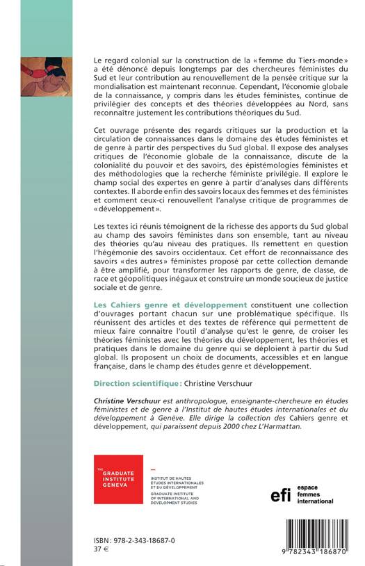 Le regard colonial sur la construction de la "femme du Tiers-monde" a été dénoncé depuis longtemps par des chercheures féministes du Sud et leur contribution au renouvellement de la pensée critique sur la mondialisation est maintenant reconnue. Cependant, l'économie globale de la connaissance y compris dans les études féministes, continue de privilégier des concepts et des théories développées au Nord, sans reconnaître justement les contributions théoriques du Sud. Cet ouvrage présente des regards critiques sur la production et la circulation de connaissances dans le domaine des études féministes et de genre à partir des perspectives du Sud global.