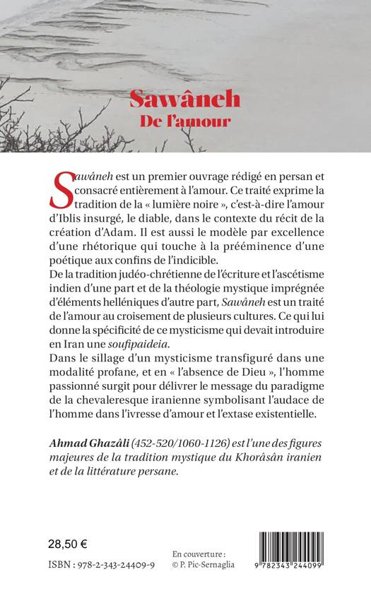 Sawâneh est un premier ouvrage rédigé en persan et consacré entièrement à l’amour. Ce traité exprime la tradition de la « lumière noire », c’est-à-dire l’amour d’Iblis insurgé, le diable, dans le contexte du récit de la création d’Adam. Il est aussi le modèle par excellence d’une rhétorique qui touche à la prééminence d’une poétique aux confins de l’indicible. Sawâneh est un traité de l’amour au croisement de plusieurs cultures. Ce qui lui donne la spécificité de ce mysticisme qui devait introduire en Iran une soufipaideia. Dans le sillage d’un mysticisme transfiguré dans une modalité profane, et en « l’absence de Dieu », l’homme passionné surgit pour délivrer le message du paradigme de la chevaleresque iranienne symbolisant l’audace de l’homme dans l’ivresse d’amour et l’extase existentielle.