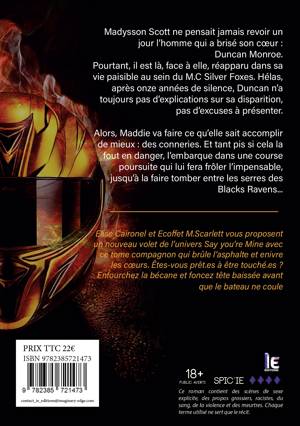 Elise Caironel et Ecoffet M.Scarlett vous proposent un nouveau volet de l'univers "Say you're Mine" avec ce tome compagnon qui brûle l'asphalte et enivre les coeurs. Êtes-vous prêt.es à être touché.es ? Enfourchez la bécane et foncez tête baissée avant que le bateau ne coule...