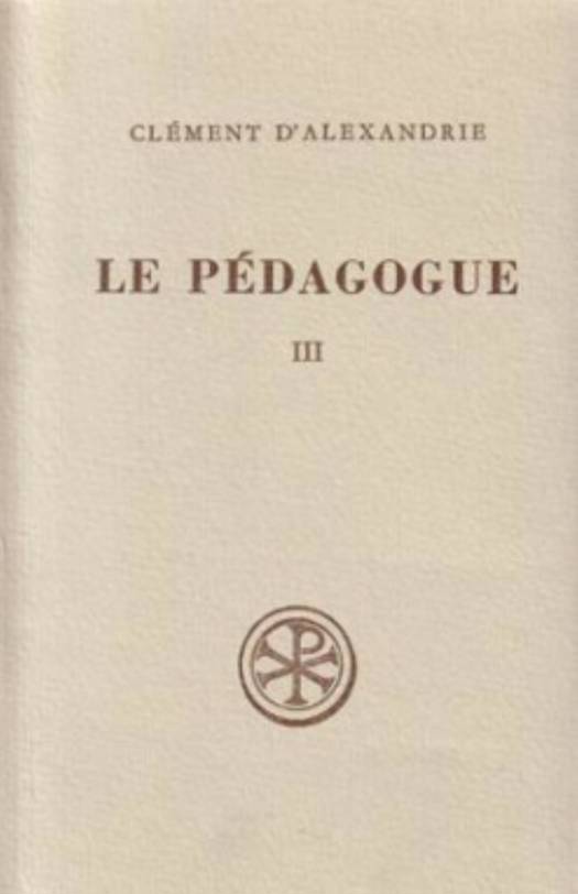 Le vaste traité de vie chrétienne que, d'une façon très consciente, Clément d'Alexandrie a voulu intituler « Le Pédagogue » est divisé en trois livres. Le premier jette les fondements. En fait, il n'y en a qu'un : le « Logos » dans notre chair, Jésus, qui seul peut guérir l'homme de son inhumanité et lui apprendre à honorer jusqu'au bout sa dignité et sa noblesse. Sous sa direction, l'existence chrétienne accomplit pleinement la morale que les sages de la Grèce avaient enseignée. Les livres II et III, se coulant sans raideur dans ce que pouvait être la journée d'un habitant d'une grande ville hellénistique, exposent tous les aspects d'une conduite juste, saine, belle, évangélique. La table et le lit sont particulièrement l'objet du livre II. Clément écrit avec verdeur, et non sans grâce. Clément est exigeant, mais sans rien d'étriqué. Un souffle de jeunesse et d'humanisme conquérant soulève cette diatribe familière qui, à propos de tous les détails de la vie, reste une hymne au Pédagogue.