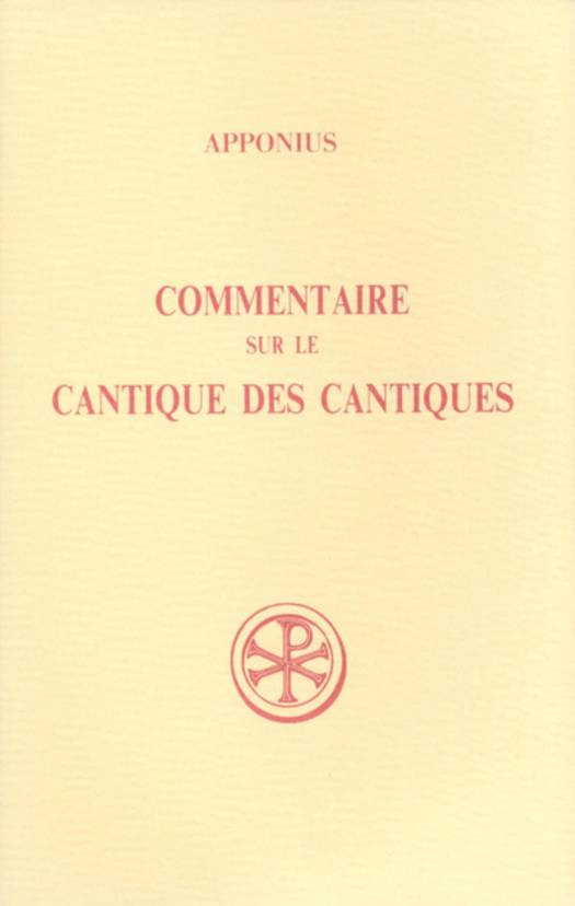 Le « Commentaire sur le Cantique des Cantiques » d'Apponius constitue une oeuvre riche et originale, autant par sa théologie de l'Incarnation, centrée sur la médiation de l'Âme du Christ entre le Verbe et « l'homme assumé », que par sa vision grandiose de l'histoire du salut se déroulant au long du Cantique depuis les origines jusqu'à la conversion finale d'Israël. La grâce, de l'Église, épouse du Christ, confiée à Pierre et aux apôtres, manifeste ici toutes ses richesses, celles des sacrements, de la virginité, du martyre, de la vie monastique. Le tout est subtilement reconnu par Apponius sous les moindres détails du Cantique, et exposé par lui en un style enthousiaste et savoureux, jouant sans cesse avec les mots et les images. Qui était Apponius, inconnu par ailleurs ? Tout semble indiquer qu'il s'agit d'un moine vivant dans l'Italie du nord ou à proximité de Rome. Les éditeurs estiment qu'il n'a pas pu écrire plus tard que le premier tiers du Ve siècle. Le « Commentaire sur le Cantique des Cantiques » d'Apponius, a connu sa première édition critique en 1986, dans la « Series latina » du « Corpus Christianorum » (n° 19), par les soins des Pères Bernard de Vregille et Louis Neyrand, membres de l'Institut des Sources Chrétiennes. Les mêmes éditeurs présentent aujourd'hui cette oeuvre dans la collection Sources Chrétiennes en l'accompagnant d'une nouvelle introduction, d'une traduction française et de nombreuses notes. Les 12 livres du Commentaire ont été répartis en 3 volumes (livres I-III, IV-VIII, IX-XII).