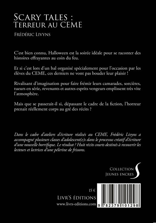 Dans le cadre d’ateliers d’écriture réalisés au CEME, Frédéric Livyns a accompagné plusieurs classes d’adolescent(e)s dans le processus créatif d’écriture d’une nouvelle horrifique. Le résultat ? Huit récits courts destinés à recouvrir les lecteurs et lectrices d’une pélerine de frissons.