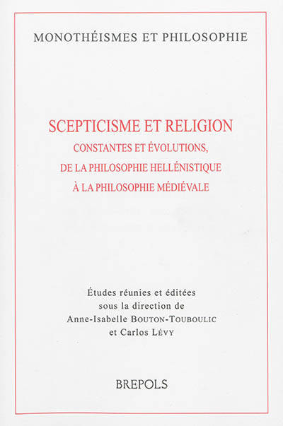 Dans le langage commun, le scepticisme apparaît comme l'opposé de la religion. Cette opposition est le produit d'une histoire, d'une relation diachronique aussi tumultueuse que forte. La richesse de ce processus a été mise en évidence par les travaux, notamment de Popkin, portant sur la Renaissance et le « libertinage ». En revanche, la question a été beaucoup moins approfondie pour l'Antiquité et le Moyen Âge. Les contributions réunies dans ce volume, qui vont de la philosophie hellénistique à la philosophie médiévale, visent donc à repenser sans préjugé la totalité du problème, avec l'espoir d'aboutir à une représentation nouvelle du lien ou de l'absence de lien entre ces deux éléments fondamentaux de la pensée occidentale.