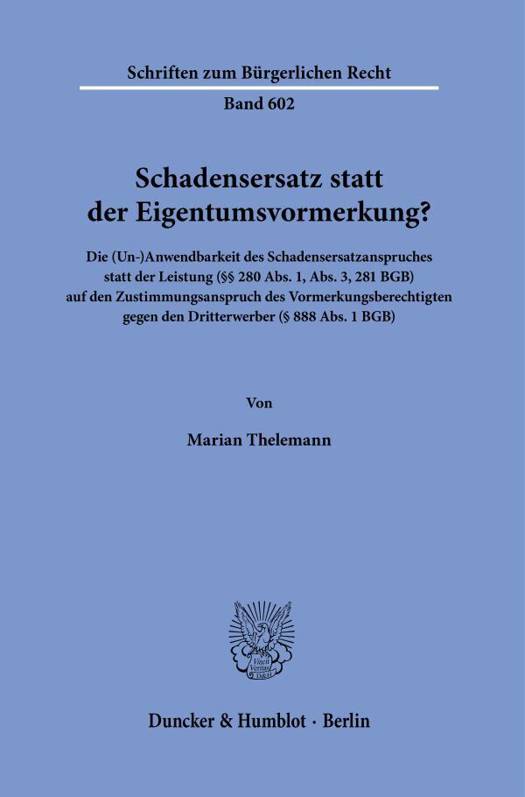 Der BGH hat die Frage nach der Anwendung des Schadensersatzanspruches statt der Leistung auf die Eigentumsvormerkung aufgeworfen. Kann der Vormerkungsberechtigte den Anspruch aus 888 Abs. 1 BGB monetarisieren, anstatt ihn durchzusetzen? Der Autor gibt als Erster eine ganzheitliche Antwort auf diese Frage. Die Anwendung lässt sich dadurch konstruieren, dass man im Schadensersatzverlangen des Vormerkungsberechtigten eine Genehmigung der vormerkungswidrigen Verfügung sieht. Der Schadensersatzanspruch statt der Leistung passt aber nicht zu der Interessenlage, welche dem Verhältnis zwischen dem Vormerkungsberechtigten und dem Dritterwerber zugrunde liegt. Der Autor trifft bei der Beantwortung der vom BGH aufgeworfenen Frage zudem eine Reihe weiterer Feststellungen, etwa zur Anwendung von schuldrechtlichen Vorschriften auf dingliche Ansprüche, zu den Rechtswirkungen der Vormerkung oder zur Anwendbarkeit von Vorschriften des Eigentümer-Besitzer-Verhältnisses.