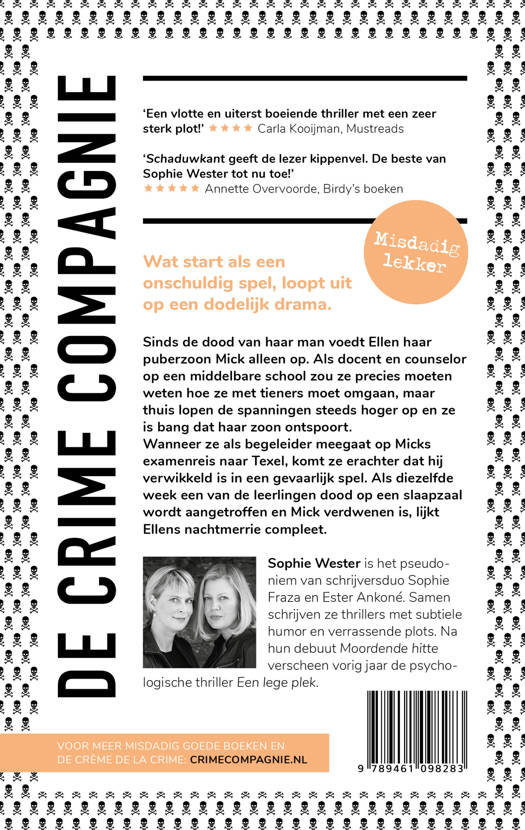 Wanneer ze als begeleider meegaat op Micks examenreis naar Texel, komt ze erachter dat hij verwikkeld is in een gevaarlijk spel. Als diezelfde week een van de leerlingen dood op een slaapzaal wordt aangetroffen en Mick verdwenen is, lijkt Ellens nachtmerrie compleet.