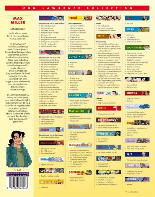 In dit album maar liefst twee avonturen van Max Miller. In Schaduwspel reizen Max en Eva af naar Oostenrijk waar Eva en haar teamgenoten deelnemen aan het biatlonkampioenschap. Maar in de schaduw van het biatlonparcours smeedt de gokmaffia snode plannen. Eva’s teamgenoot Joey wordt met de dood bedreigd. En in het skigebied van Tirol krijgt Max te maken met een nietsontziende tegenstander: Oscar Wolvega. In Spelbederf doet Eva mee aan Street Wars, een paintballwedstrijd in het centrum van de stad. Maar Eva’s tegenstander, voor wie er grotere belangen op het spel staan, schiet niet alleen met verf. Eva kan Max’ hulp dan ook goed gebruiken.
