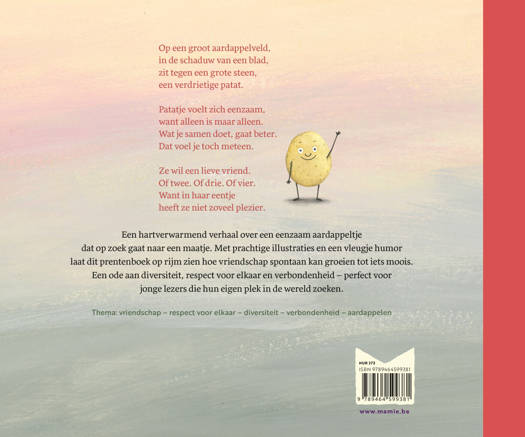 Een hartverwarmend verhaal over een eenzaam aardappeltje dat op zoek gaat naar een maatje. Over hoe verschillen kunnen verbinden en het belang van praten en luisteren naar elkaar. Maar vooral over vriendschap met respect voor iedereen!