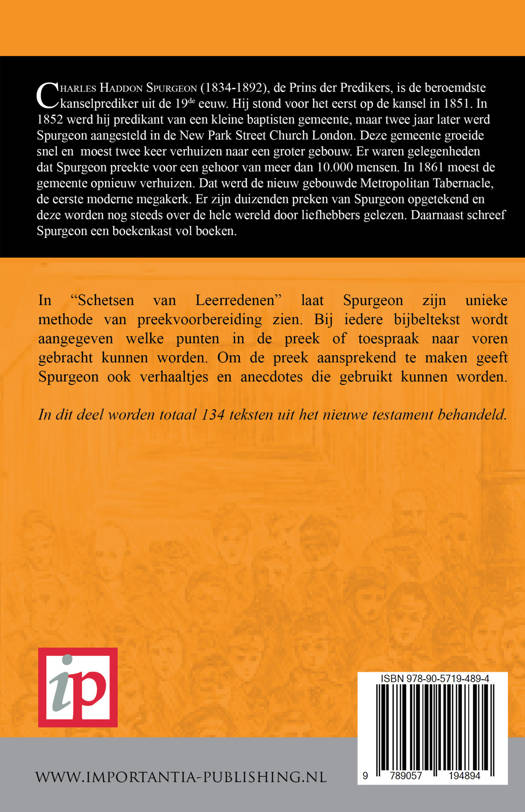 In "Schetsen van Leerredenen" laat Spurgeon zijn unieke methode van preekvoorbereiding zien. Bij iedere bijbeltekst wordt aangegeven welke punten in de preek of toespraak naar voren gebracht kunnen worden. Om de preek aansprekend te maken geeft Spurgeon ook verhaaltjes en anecdotes die gebruikt kunnen worden.