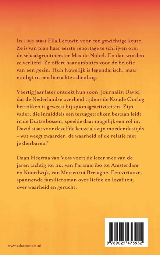 Daan Heerma van Voss voert de lezer mee van de jaren tachtig tot nu, van Paramaribo tot Amsterdam en Noordwijk, van Mexico tot Bretagne. Een virtuoze, spannende familieroman over liefde en loyaliteit, over waarheid en gerucht.