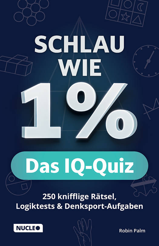 Quiz trifft auf GehirnjoggingTeste in diesem spannenden Quiz dein Logikgeschick und deine Auffassungsgabe: Bist du so schlau wie 1 %?Jeder kann mitratenBei diesem Quiz kann jeder mitspielen, denn es geht nicht um Wissen - hier müssen Rätsel geknackt werden.Schlauer als der Rest?Stelle dich allein oder mit deiner Familie und Freunden den Aufgaben, bei denen auch mal um die Ecke gedacht werden muss.Highlights:- 250 Rätsel- und Denksportaufgaben- Viele verschiedene Kategorien und Rätselarten- Löse die Fragen zwischendurch allein oder spiele das Quiz in der Gruppe- Erfahre deinen Schlauheits-Wert: Wie viel schlauer als die anderen bist du?Das Rätselbuch, das auch ein Spiel istLöse zahlreiche Rätsel und Logikaufgaben - allein wie bei einem Rätselbuch oder zusammen als Spiel, um herauszufinden, wer von euch schlauer ist. Jetzt holen und losknobeln!