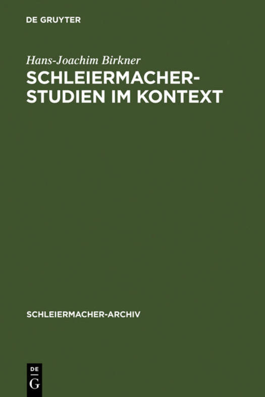 Schleiermacher-Studien im Kontext