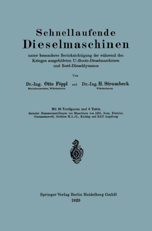 Schnellaufende Dieselmaschinen Unter Besonderer Berücksichtigung Der Während Des Krieges Ausgebildeten U-Boots-Dieselmaschinen Und Bord-Dieseldynamos