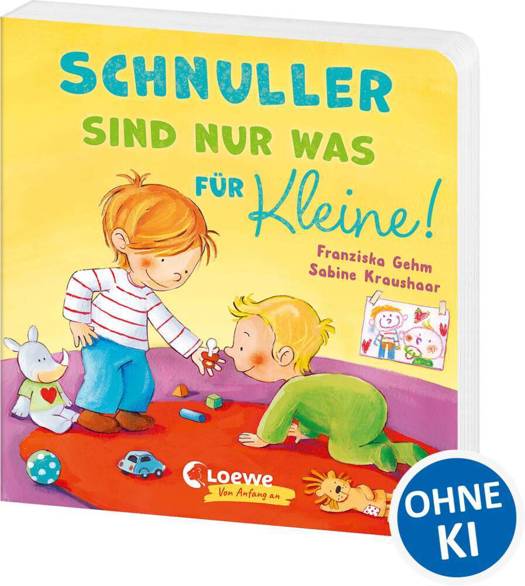 1, 2, 3 - sind Kinder schnullerfrei! Peter hat zehn Schnuller - und die braucht er alle unbedingt! Aber einen schnappt sich der Elefant im Zoo, einen tauscht Peter gegen ein Spielzeugauto, einen gräbt er ein ... und plötzlich hat Peter nur noch einen - und den schenkt er seiner kleinen Schwester. Denn Peter ist schon groß und Schnuller sind nur was für kleine Kinder! Auf jeder Doppelseite verschwindet ein Schnuller von der Leiste. So werden Kinder nicht nur ihren Schnuller los, sondern lernen auch blitzschnell die Zahlen von eins bis zehn. - Wichtiges Thema: Schnuller-Entwöhnung - Gereimtes und lustiges Pappbilderbuch, um Schnuller loszuwerden - Hilft Kindern, sich von ihren Schnullern zu trennen - Vermittelt spielerisch die Zahlen von 1 bis 10 - Gereimte Texte machen Spaß und fördern den Sprachrhythmus - Perfekt zum gemeinsamen Lesen, Betrachten, Lachen und Entdecken - Vorlesen fördert die Eltern-Kind-Beziehung und stärkt wichtige Kernkompetenzen wie Empathie und Sprachgefühl - Vermittelt wichtige Informationen zum Kinderalltag - Ideal als Geschenk für alle großen Kleinkinder - Lebhafter Text von Franziska Gehm - Fröhliche Illustrationen von Sabine Kraushaar