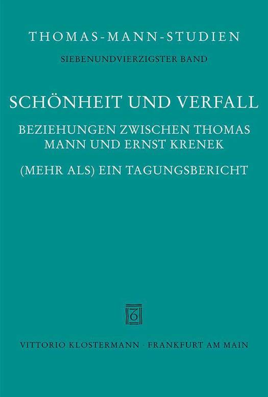 Unter dem Titel "Schönheit und Verfall - Beziehungen zwischen Thomas Mann und Ernst Krenek" fand im September 2011 in Krems an der Donau eine Tagung statt, die sich den vielfältigen Bezügen zwischen dem Werk Thomas Manns und dem kompositorischen wie musiktheoretischen Werk Ernst Kreneks widmete. Die Beiträge spüren den intertextuellen Schnittmengen zwischen Thomas Manns Roman "Der Zauberberg" und Kreneks Zeitoper "Jonny spielt auf" nach, stellen Thomas Manns Schwager Klaus Pringsheim als ebenso bissigen wir sachkundigen Kritiker Krenek´scher Opern vor und widmen sich der Dreiecksbeziehung zwischen Mann, Krenek und Bruno Walter. Das Verhältnis des Literaturkritikers Ernst Krenek zu Thomas Mann ist ebenso Thema eines Beitrags wie der Einfluß von Kreneks musiktheoretischen Schriften auf den Roman "Doktor Faustus" und die Rolle Kreneks als Mitarbeiter an Thomas Manns Exilzeitschrift "Mass und Wert". Zwei weitere Beiträge widmen sich dem jüngsten Sohn Thomas Manns, dem Musiker und Germanisten Michael Mann, dessen Lebenswege sich mit denjenigen Kreneks vielfach kreuzten. In seinem zweiten Teil bietet der Band einen umfangreichen Anhang, der vornehmlich aus Erstveröffentlichungen besteht und die kompletten Korrespondenzen zwischen Thomas Mann bzw. Michael Mann und Ernst Krenek, aber auch ausgewählte Briefe Michael Manns an Theodor W. Adorno, Klaus Pringsheim und Wolfgang Steinecke sowie den Erstdruck von Michael Manns Libretto "Der Mediator" enthält.