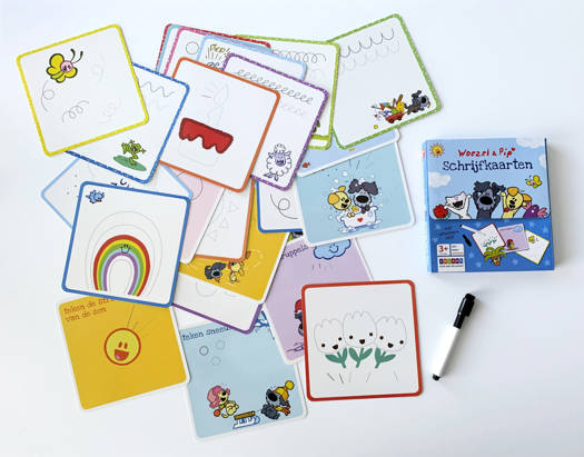 Vindt jouw kind het leuk om te leren schrijven? Dan zijn deze schrijfkaarten mét uitwisbare stift een uitkomst. Samen met Woezel & Pip en alle vriendjes uit de Tovertuin oefent je kind volop het schrijven van rondjes, strepen en krullen. Deze fijn-motorische oefeningen zijn een goede voorbereiding op het schrijven op school. De schrijfbewegingen zijn ontwikkeld door deskundigen op het gebied van schrijfonderwijs. Doordat de stift uitwisbaar is, kan je kind eindeloos oefenen.
